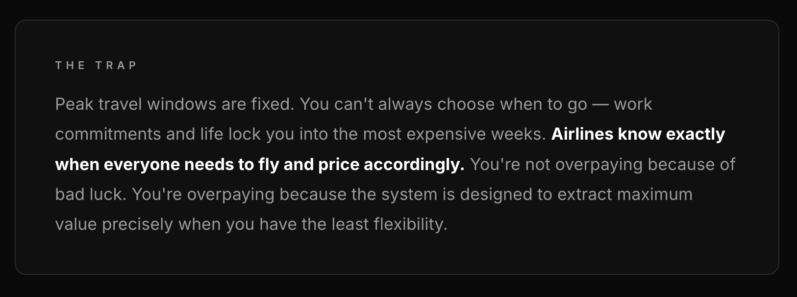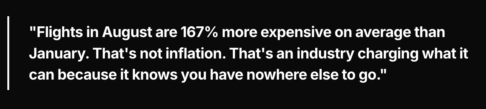 Let's skip straight to what you actually want to know. What are flights really costing — and how much of that is the system taking advantage of the fact you don't have a choice about when to travel?