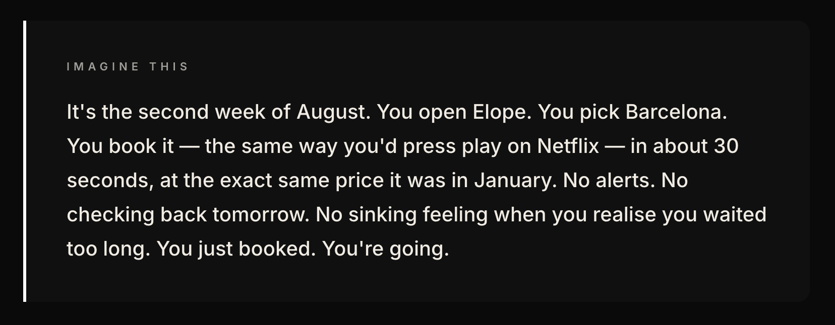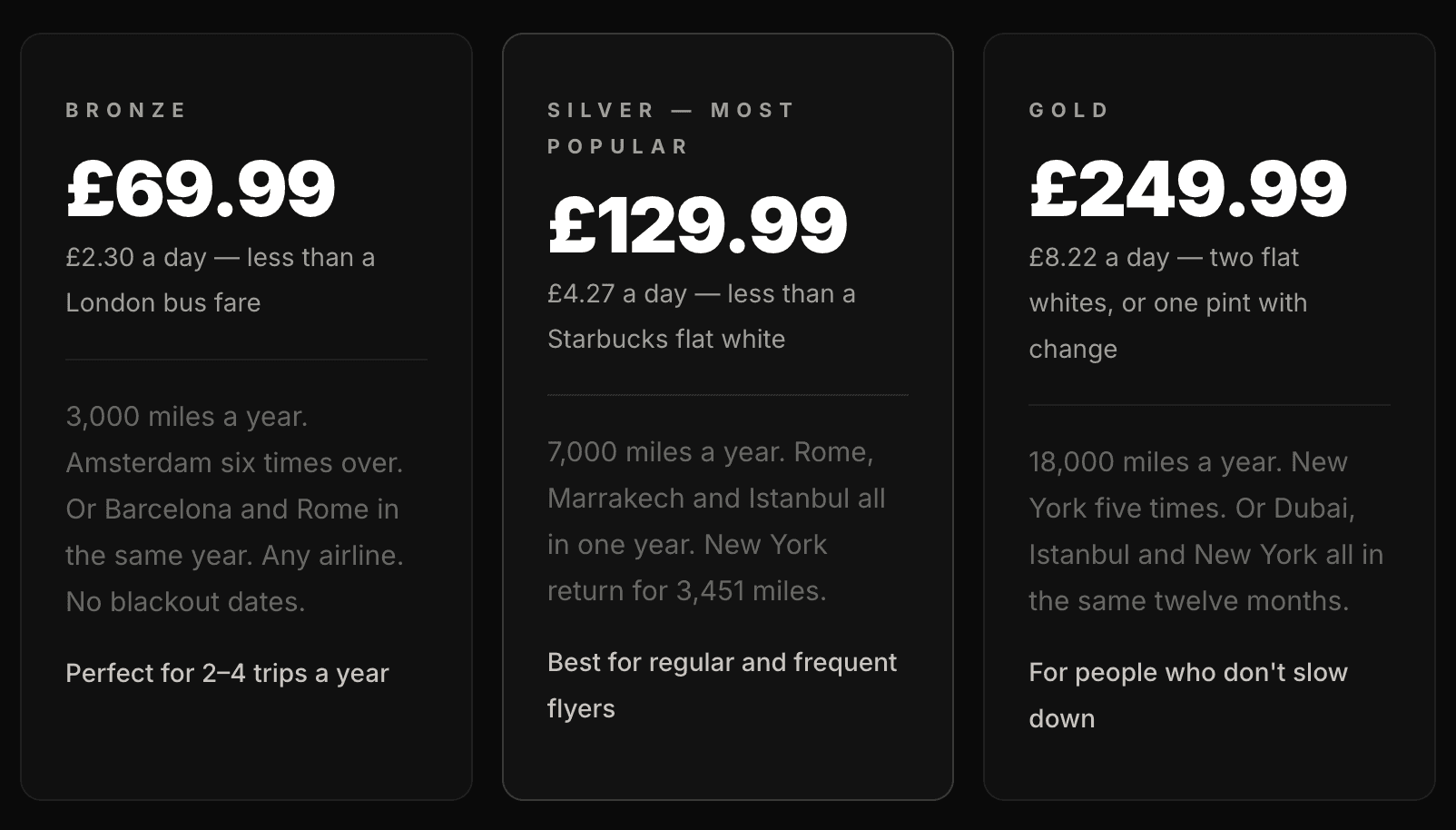A Starbucks flat white costs £5.10. Elope Silver costs £4.27 a day. Right now, today, you are spending more on a drink that takes four minutes to consume than you would on the subscription that flies you to the city where that same drink costs 90p.